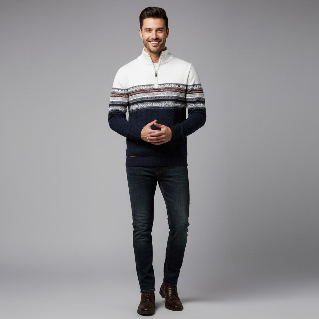 The Harry half-zip sweater is crafted from a soft, insulating knit that keeps you comfortably warm on cold days without feeling heavy. The half-zip collar allows easy layering and quick temperature control, making it perfect for both outdoor walks and relaxed indoor settings.